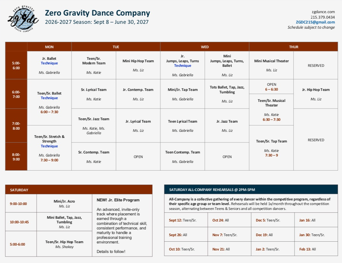 2026-2027 ZGDC DANCE SCHEDULE